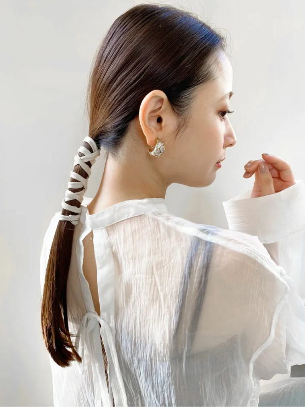 コテで巻き髪を作るのもアップなどのヘアアレンジも苦手という、卒業式を控えたロングの母親向けアレンジなら「紐」を使うのがおすすめです。