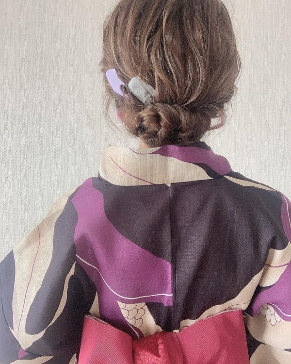 着物に似合う基本を再現するとタイトな髪型になってしまい自分に似合わないというショートさんには、少しカジュアルになりますが片方だけを耳掛けして反対側を巻くスタイリングがおすすめです。