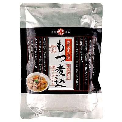 お腹も心もほっこりする「もつ煮込」もおすすめのご飯のお供ですよ。国産の豚もつと国産野菜がたっぷりで具沢山。