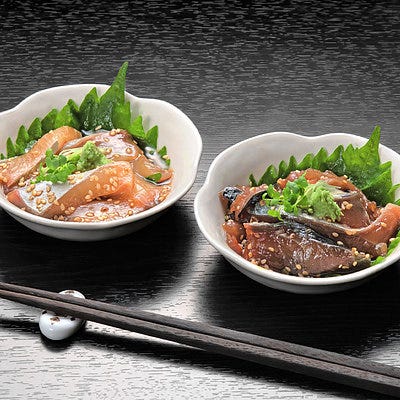 さば・かんぱちの刺身を甘辛い醤油で漬け、薬味を添えた博多で愛されている郷土料理です。