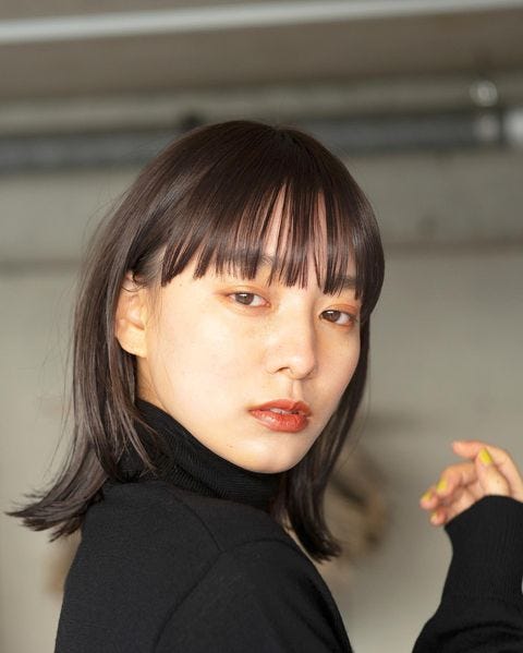 前髪にも隙間が出るようなカットを施せば、縦ラインが強調できて綺麗な輪郭に見えます。シンプルな髪型ですが、モード感があっておすすめ。