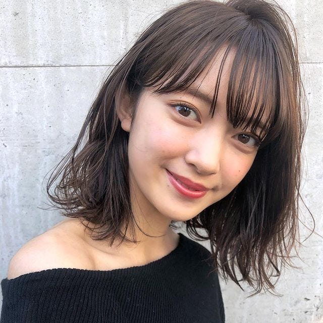 透け感たっぷりな切りっぱなしボブも丸顔カバーができる髪型です。
