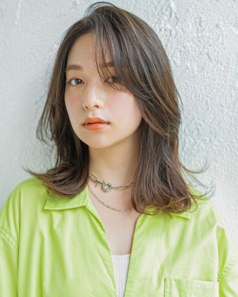 ふんわりと後ろに向かって流れるようなミディアムも、レイヤーをたっぷり入れると丸顔の輪郭をカバーできます。
