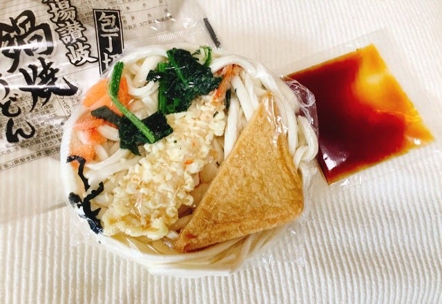 うどんの上に具材が載った状態で冷凍されています。