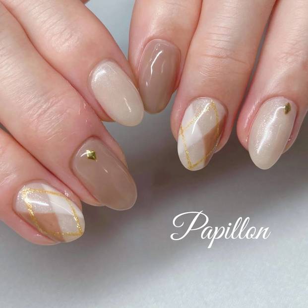 【2月ベージュ編】おすすめのショートネイルデザイン①トラッドなアーガイル柄