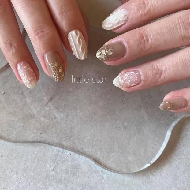 【2月ベージュ編】おすすめのショートネイルデザイン③ニットネイル