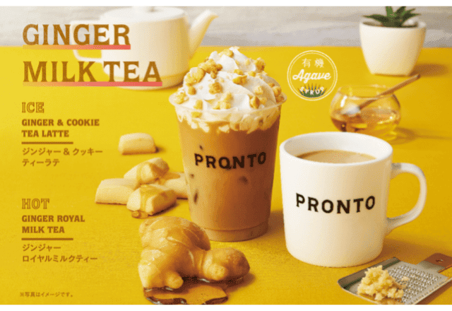 2月15日(火)にPRONTO(プロント)のカフェタイムにて「ジンジャー&クッキーティーラテ」と「ジンジャーロイヤルミルクティー」が新発売!