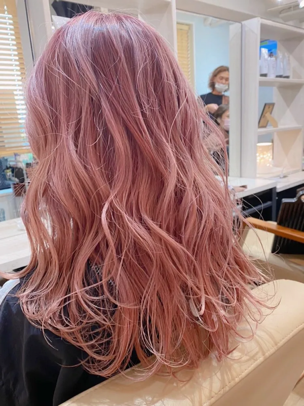 ピンク色の可愛らしい印象もありながら色っぽさを感じるウェーブで、ブリーチありでも大人女性らしいフェミニンさ溢れる男女問わず愛されるスタイルの完成!