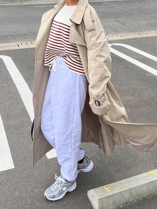 きれいめコーデにも馴染みやすいので、ハードすぎてなかなかダッドスニーカーに挑戦できなかった人にもおすすめ。柔らかなトーンを選ぶのもコツ!