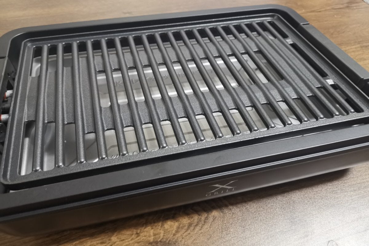 この「X GRILL」何がスゴいのかというと、独自のプレートの形状で調理中の煙を70パーセント、油ハネを85パーセントも減少するのだ。