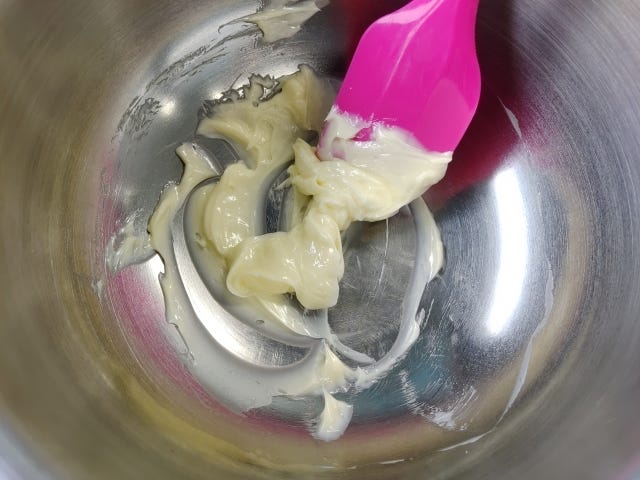 ① ボウルにバターを入れクリーム状によくすりまぜる。