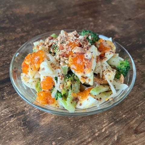 ハニーマスタードマヨサラダは、ナッツ、ブロッコリー、玉ねぎなど食感のよい材料を使ったレシピです。
