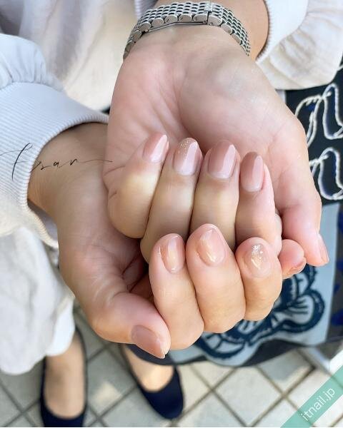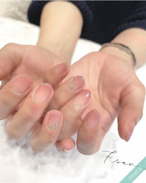 ピンクベージュのグラデーションネイルがとても良く肌になじんでいますね◎