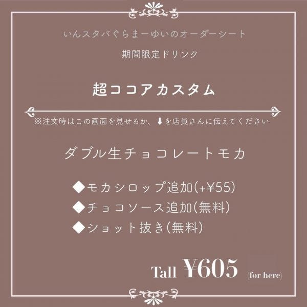今回は「バレンタインまで限定の激推し新作モカカスタム」をご紹介します。