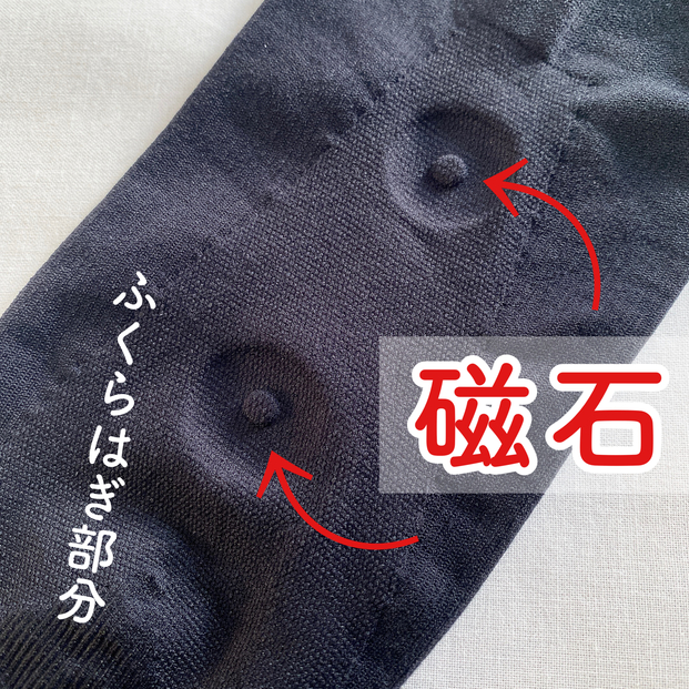 ふくらはぎ部分をよ〜く見ると、2つの小さな磁石が内蔵されています。事前に行ったモニター調査でも「磁石がついていると分かりにくくていい」と9割以上の方から好評だったそうです。