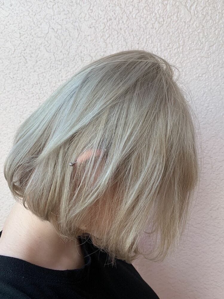 人気のグレージュアッシュをハイトーンで仕上げた髪色です。イルミナカラーが外国人のようなきれいな発色を叶えてくれていますね。