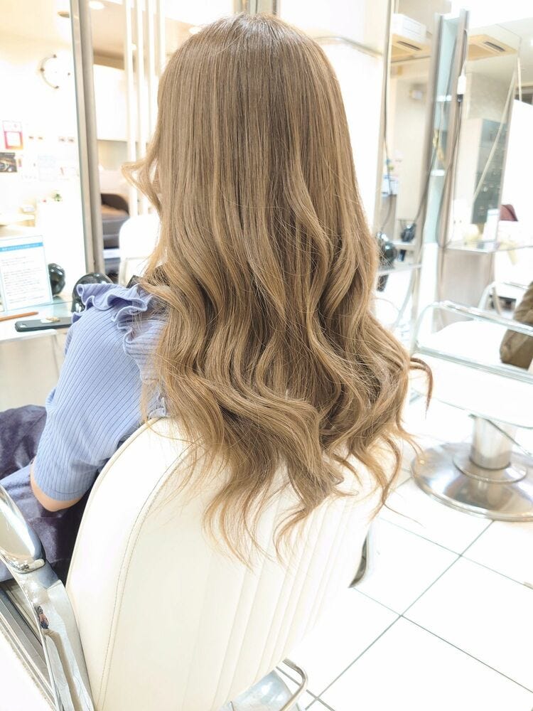 定番のベージュ系カラーと大人っぽく落ち着いた雰囲気を演出してくれるアッシュカラーの組み合わせで、ハイトーンでも派手にならない髪色を叶えてくれるんです。