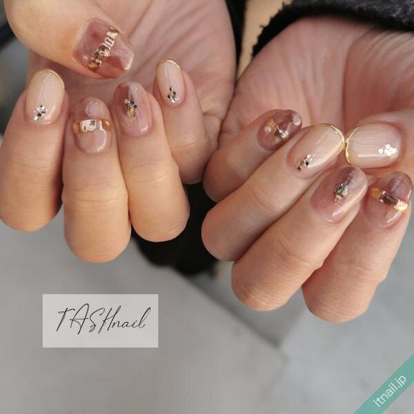 ヌーディーカラーのニュアンスネイルは、指先に馴染みやすく、さり気ないこなれ感が楽しめるデザインです。グラデーションや塗りかけなど、もやっとしたベージュネイルを作ってみて♡ストーン付きのリングに合わせて、シェルやラメで輝きをプラスするのもGOOD。