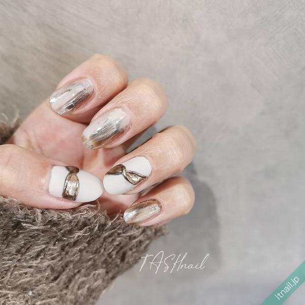 ブルー系のニュアンスデザインは、爽やかなリングネイルを楽しみたい方に◎。リング部分はシンプルに塗りながら、他の爪でブルーやホワイトのもやもやネイルにすると抜け感が出ます。