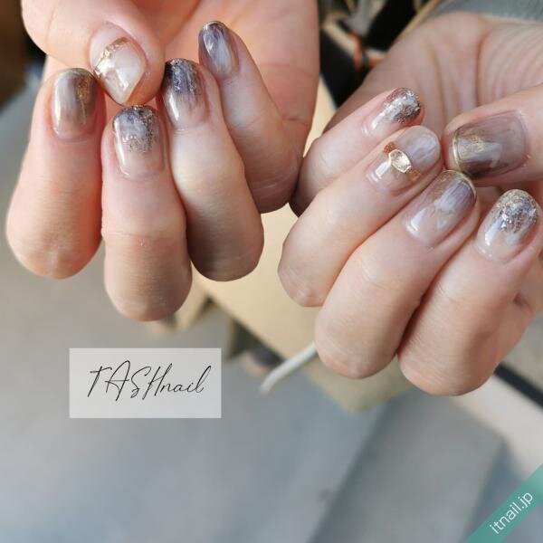 大人向け♡ブラウンのニュアンスネイルとリングネイル