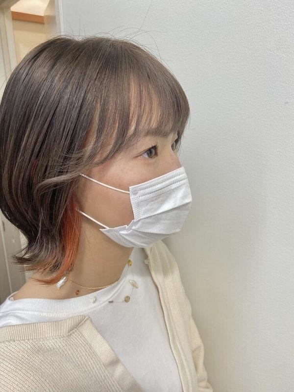 顔色が明るく健康的に見えるオレンジのインナーカラーは幅広い世代の女性に人気です。