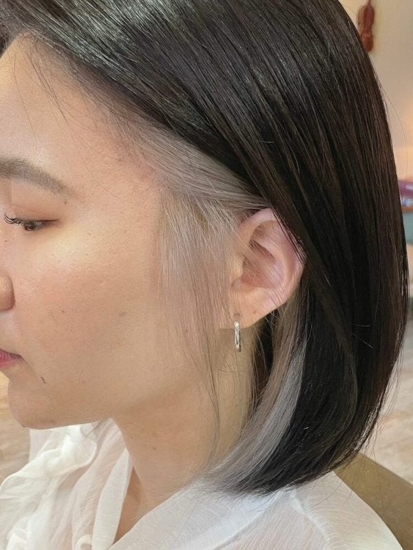 ベースの髪色に暗めグレー、インナーカラーに明るめシルバーグレージュを入れています。シルバーはおしゃれに見えるトレンドカラーです。