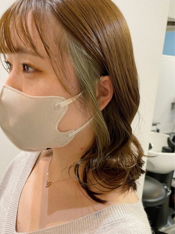 ブルベのミディアムヘアをおしゃれに見せるアイスラベンダーのインナーカラーです。
