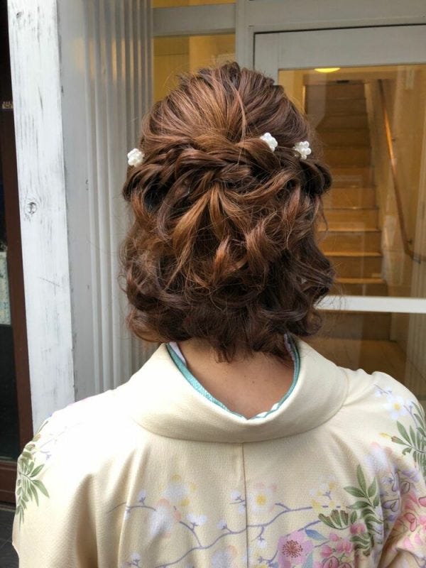 結婚式などのお呼ばれシーンでは着物を着ることもあるでしょう。ハーフアップアレンジは、ミディアムの和装ヘアにもおすすめです。