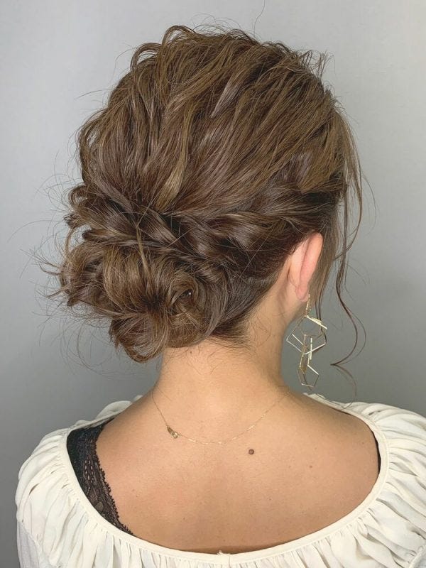 ミディアムのレングスがあれば、セルフアレンジもいろいろできます。シニヨンやお団子でまとめたアップスタイルは、お呼ばれヘアの定番。