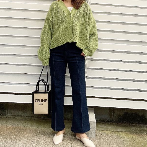 GUで人気の高い、同価格の「ハイウエストセミワイドジーンズ」にやや似たシルエットになっていますが、「センタープレスセミフレアジーンズ」のほうが幅が狭い仕様で、すっきり見えてきれいめに穿けるアイテム。