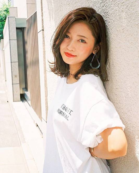 耳周りにボリュームを出してひし形を作れば、小顔効果抜群のミディアムヘアに仕上がります。