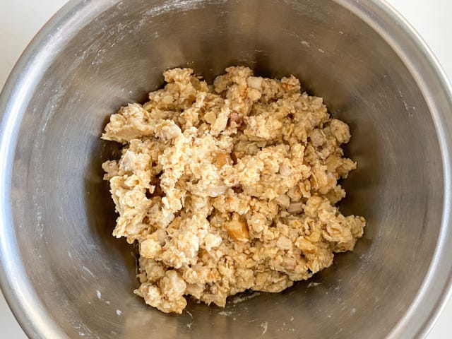 ぎりぎりまとまる固さでOKです。まとまりにくい場合は、豆乳の量で調整してください。