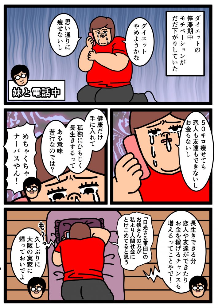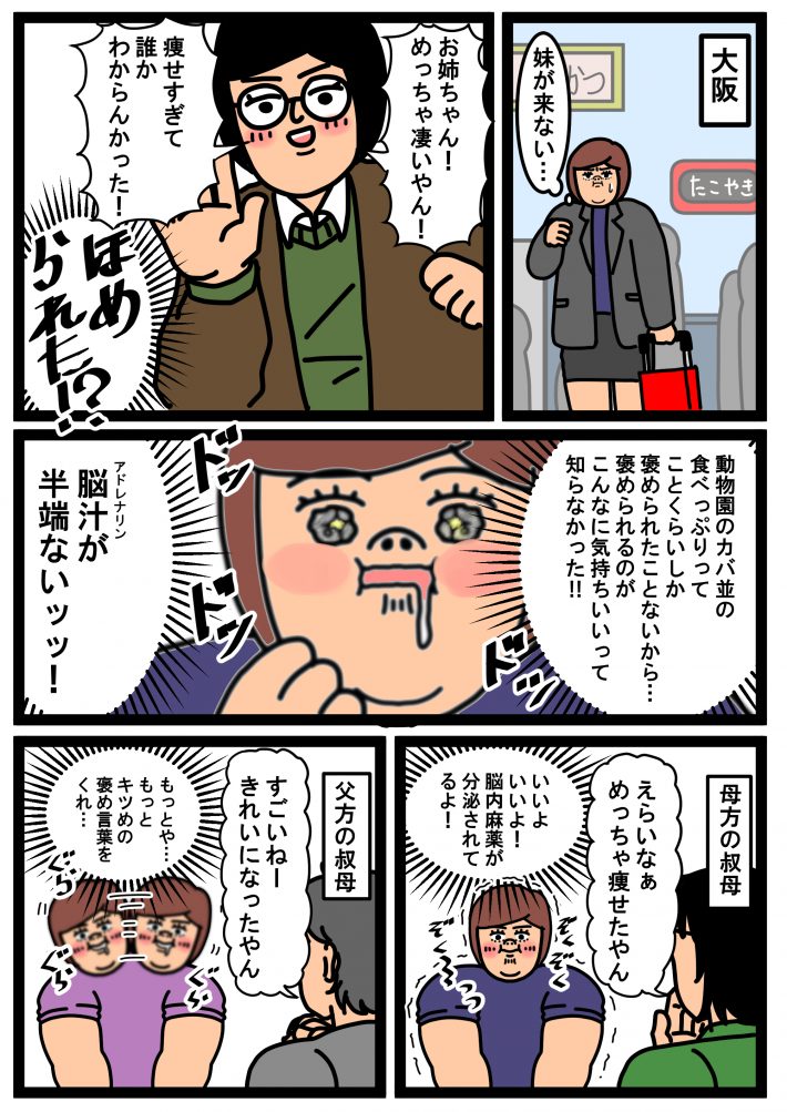 ダイエットは基本、孤独な挑戦である――。自身の生活を改めて見直して、食事、運動、そのすべてを律していく。お笑いコンビ「ハニートラップ」のボケ担当・八木さんはコロナ禍に50kgの減量に大成功! しかし、コロナ禍でなかなか“褒め称えてもらえない”状況についに苦しくなってしまい……。八木さんがとった行動とは!?