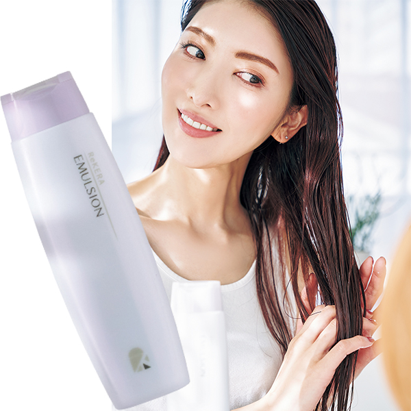 ミルクタイプのリケラエマルジョンをたっぷりとつけます。これがないと、髪のまとまり方が全く変わってきます。
