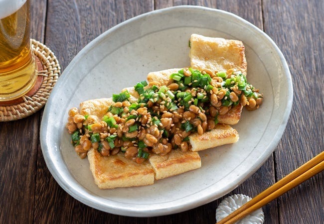 焼いた油揚げと納豆の組み合わせは、同じ大豆の食材なので、相性ばっちり!