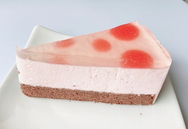 上から桜のジュレ、苺ムース、チョコレートスポンジの3層になっています。