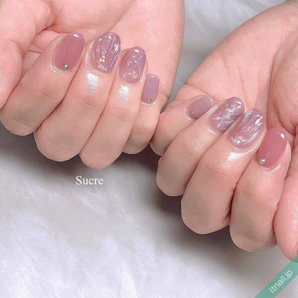 こちらは、くすみ感のあるピンクベージュにオーロラフィルムを施したデザインです。