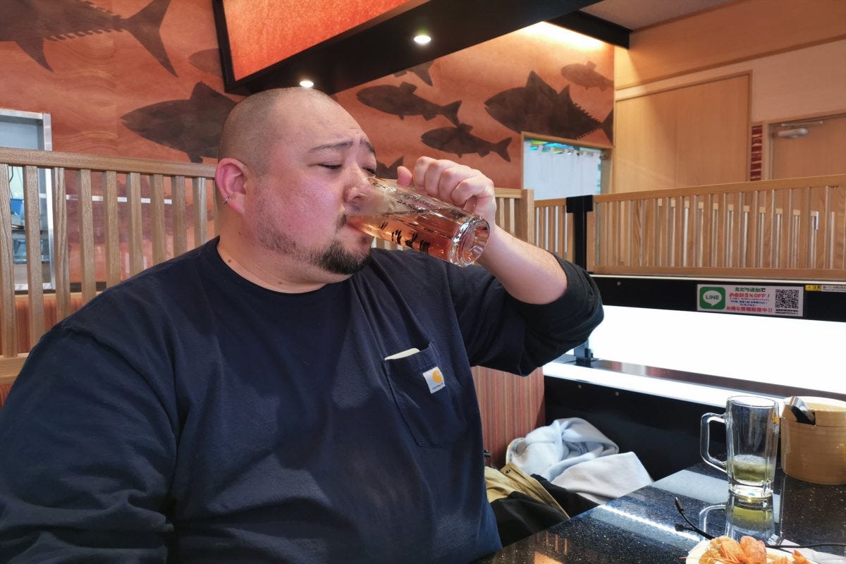 しかもサーモンを2皿一気に頼む弟子のヤングな注文方法に、奏吉さんは「わかってないな...レモンサワーとサーモンに逃げるな!」とやや不満ぎみなようすを見せていた。