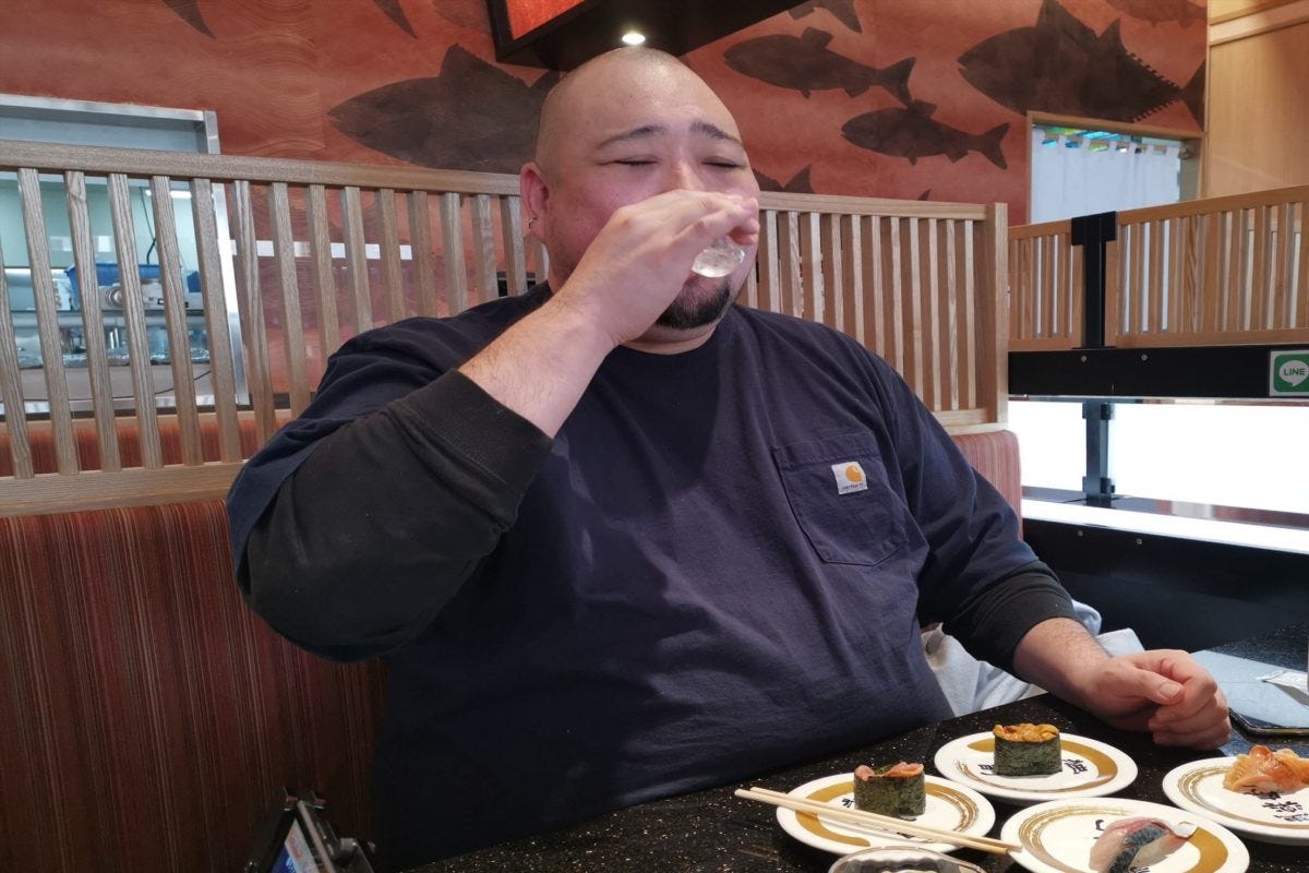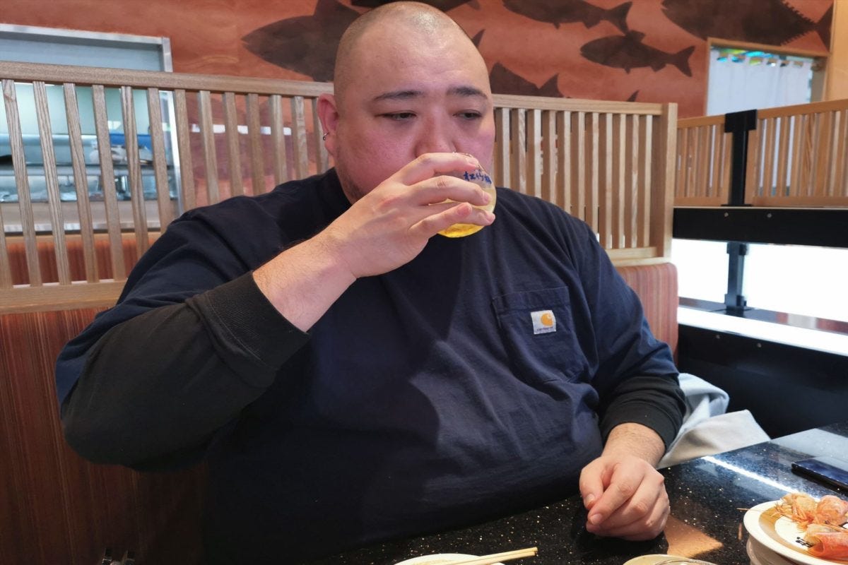 では、奏吉さんがどのような注文方法をしたのかというと、緑茶割りで口をスッキリとさせたあとにうにや生サバ、赤貝など日本酒に合う寿司をチョイスし、一緒に冷酒と楽しむオツな食べ方を見せた。