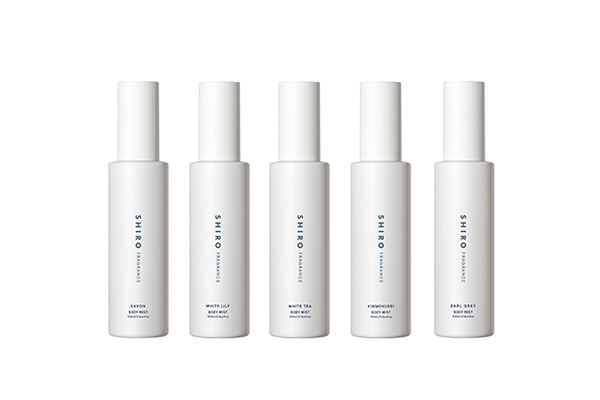 今回はそんな「ボディミスト」に、サボン/ホワイトリリー/ホワイトティー/アールグレイ/キンモクセイといった、SHIRO定番の5種類の香り(税込1980円/100mL ※箱なしでの販売)が春夏限定でお目見え。