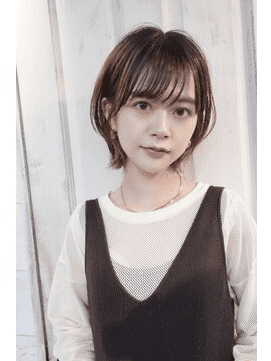 前下がりシルエットのヘアスタイルなので、小顔見え効果が期待できますよ♪