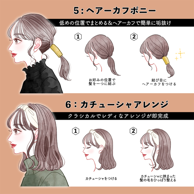 低めの位置でまとめる&ヘアーカフで簡単に垢抜け