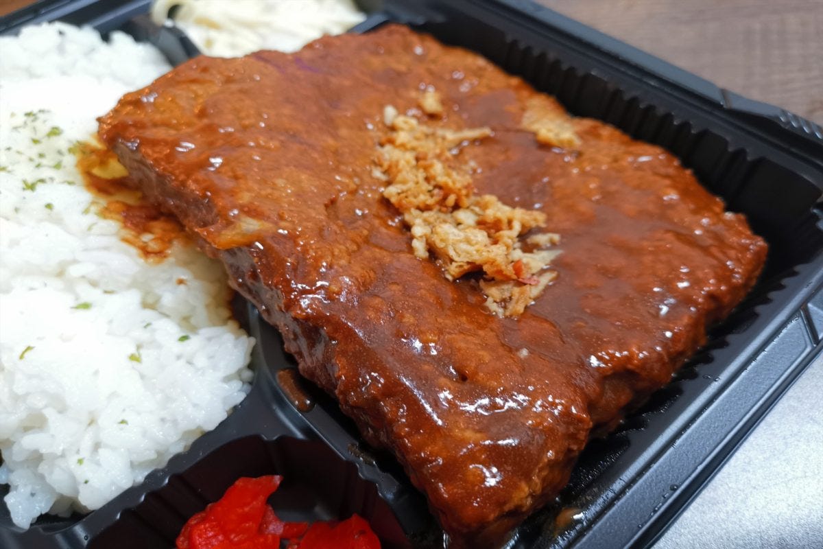 特筆すべきは濃厚なソースで、ちょっといい洋食店に匹敵する奥深さは弁当店の平均クオリティを軽く超えている。ハンバーグ好きなら、ぺろっとイケてしまうことだろう。