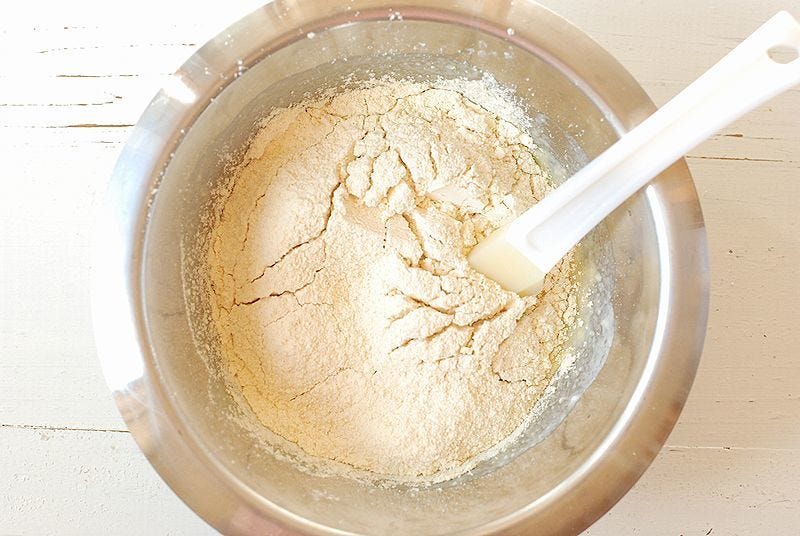 ④ ③に大豆粉とベーキングパウダーを合わせたものを網で振るいながら加え、ゴムベラでさっくり混ぜる。