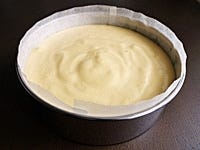 生地を型に入れ、上から2~3回軽く台に落として、空気を抜きます。予熱しておいた160℃のオーブンで約20分焼きます。