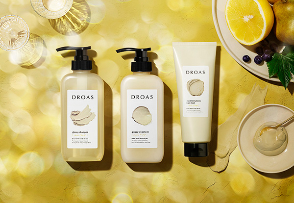 「DROAS グロッシーシャンプー」と「DROAS グロッシートリートメント」(ボトル 各 税込990円/詰替え 各 税込770円)はマストチェック!