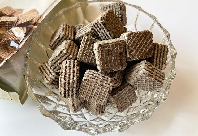お値段も味も大満足の「ひとくちブラックウエハース」。