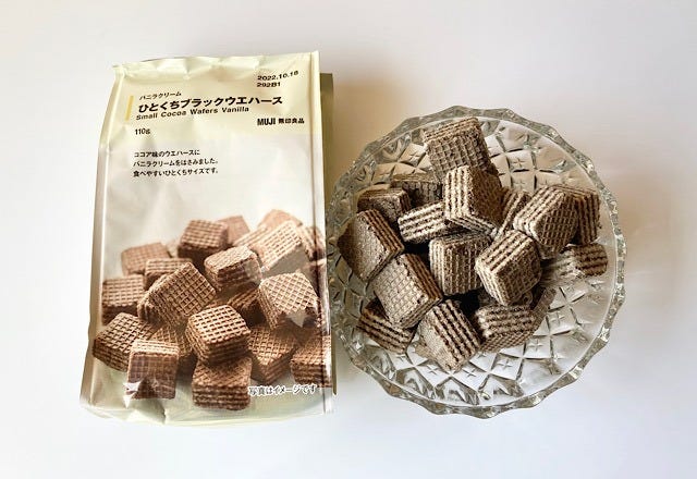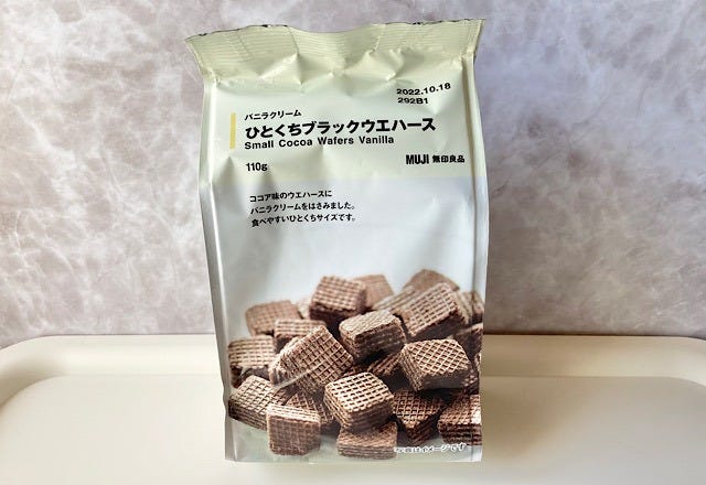 そんな無印良品で『価格を見直しました』のPOPに惹かれて購入した「ひとくちブラックウエハース」。