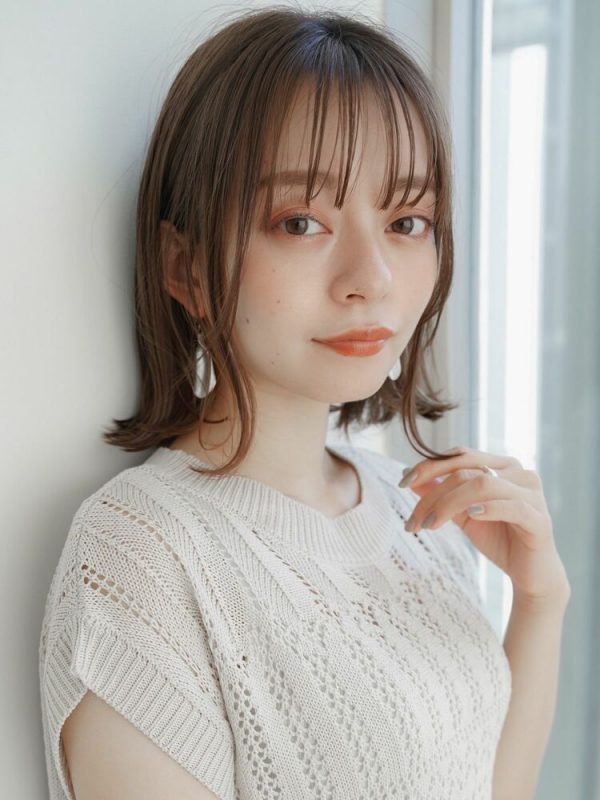 重めなレイヤーカットのボブはアッシュブラウンで、くすみ感を出して柔らかい印象にするのがおすすめ。