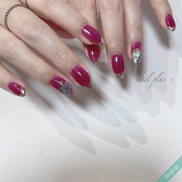 人気のガラスフレンチネイルも、ニュアンスのある先端ラメで抜け感をプラス♡遊び心のある入れ方ですが、全体的にキラキラでまとまっているので、ジュエリーのような高級感や輝きが楽しめます。